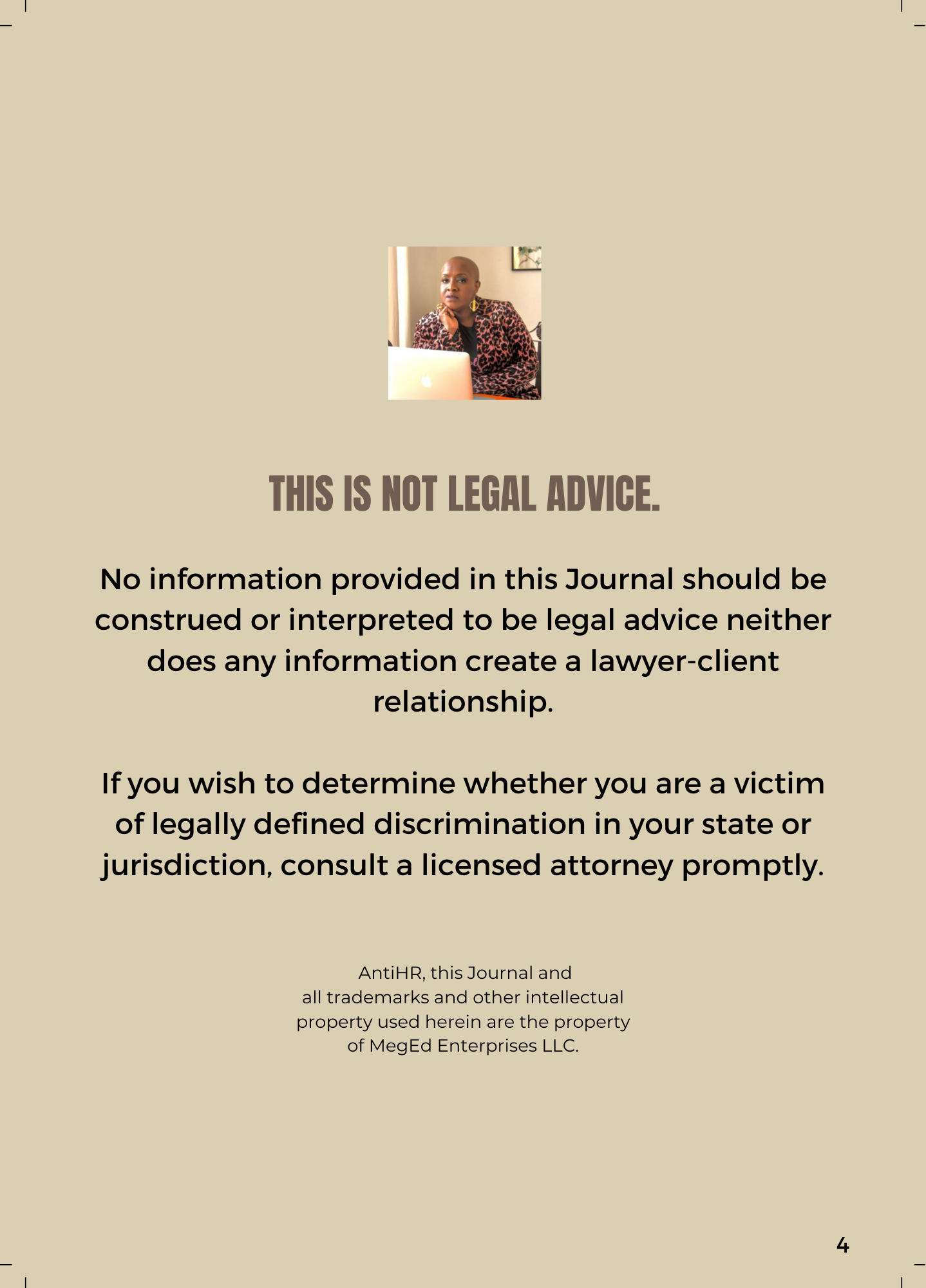 No information given in this communication, on my website, in my courses, or in consultations should be construed or interpreted as legal advice nor does it create a lawyer-client relationship. To determine if you are a victim of legally defined discrimination in your state or jurisdiction, consult a licensed attorney.