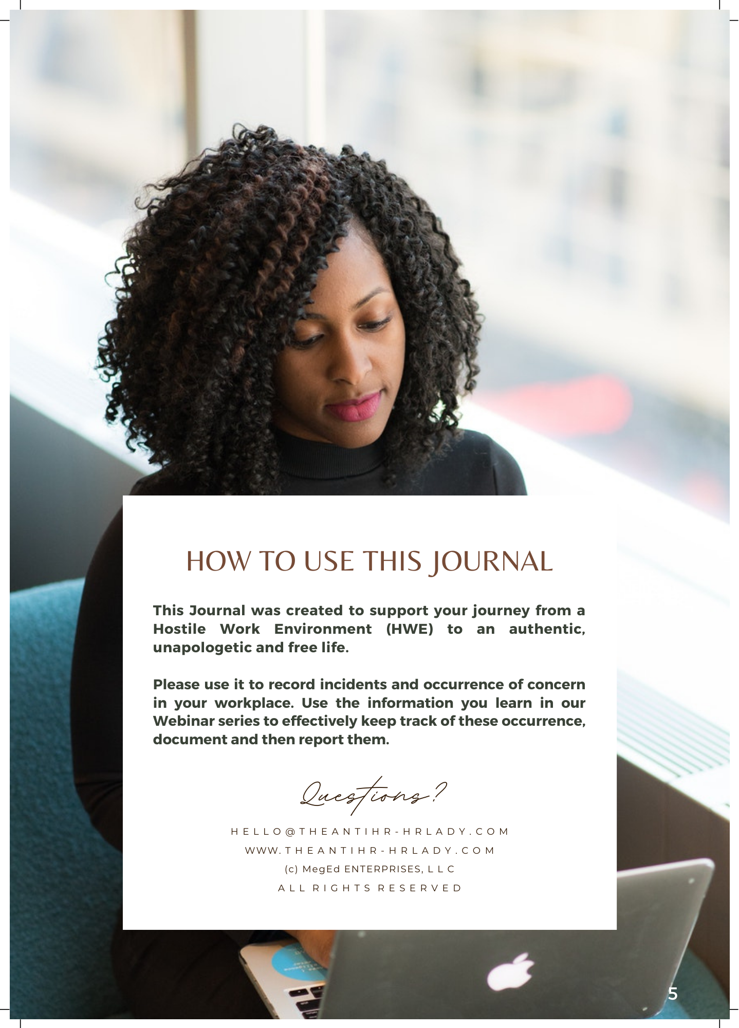 This Journal will help you effectively document, record, and keep details about your workplace. The journal includes definitions, tips, and prompts that will help you recognize and effectively document discrimination in our workplace.