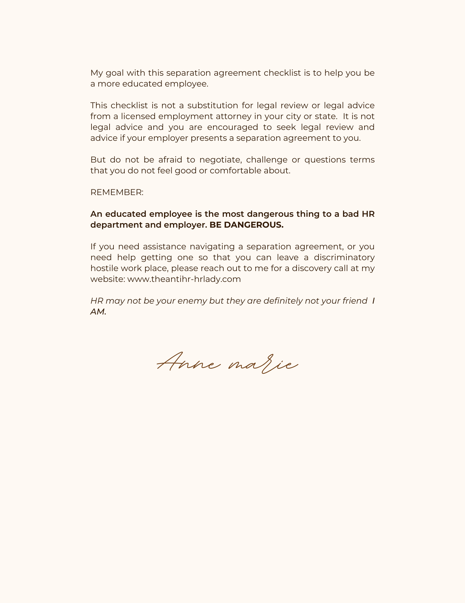 AntiHR Separation Agreement Checklist