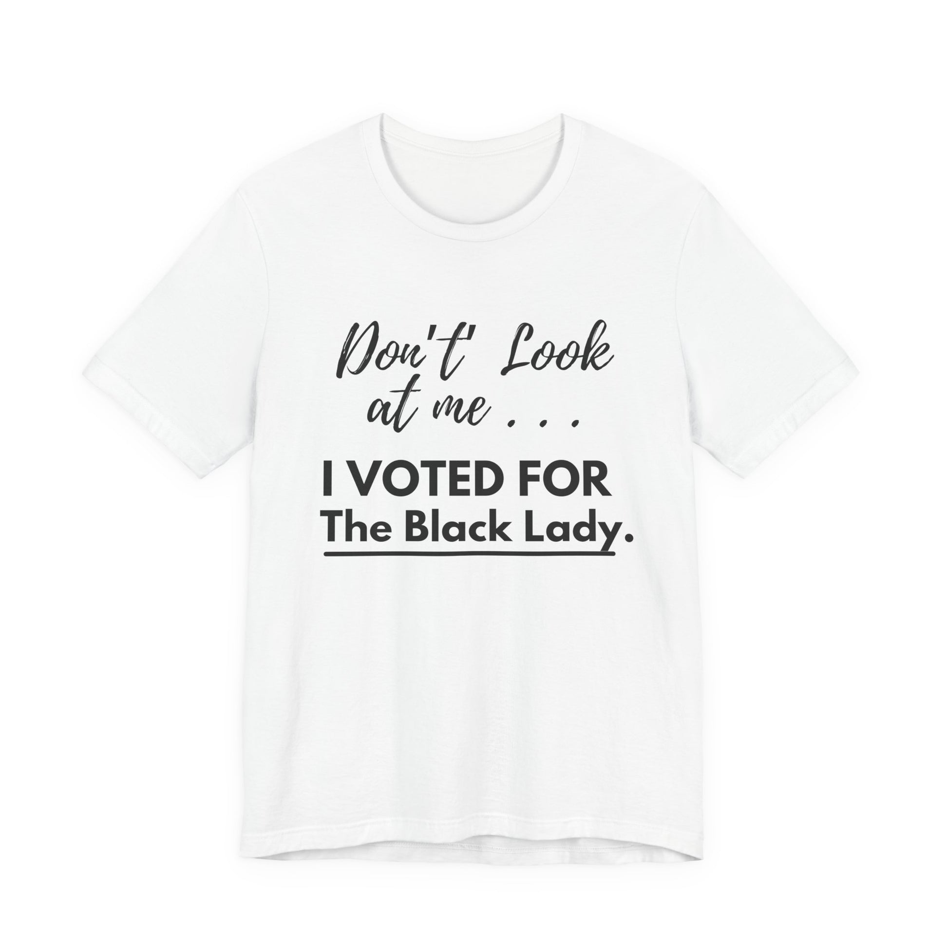 “DON’T LOOK AT ME… I VOTED FOR THE BLACK LADY” - Unisex Jersey Short Sleeve Tee - White