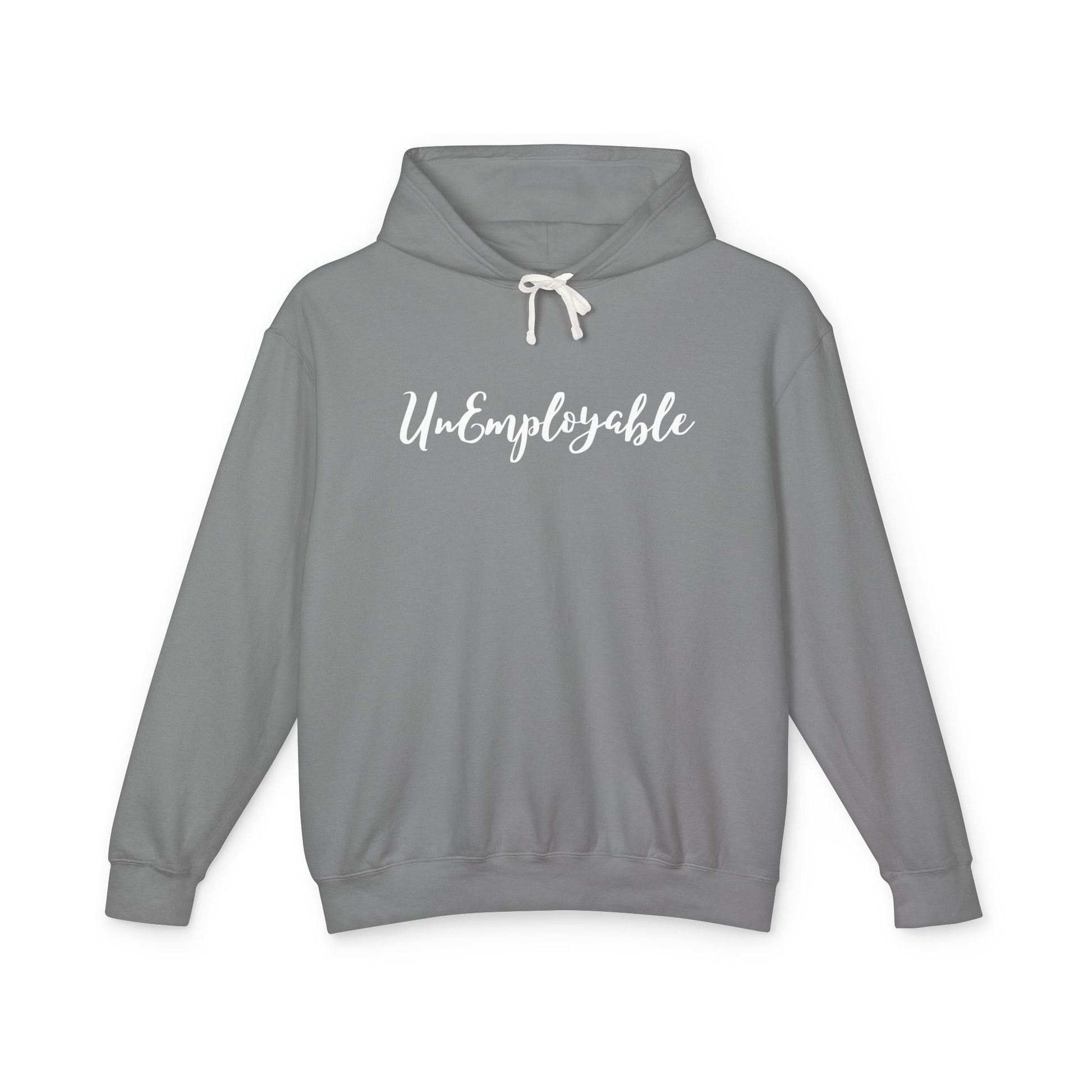 UNEMPLOYABLE – Unisex Lightweight Hooded Sweatshirt (Black w/ White Letters)
